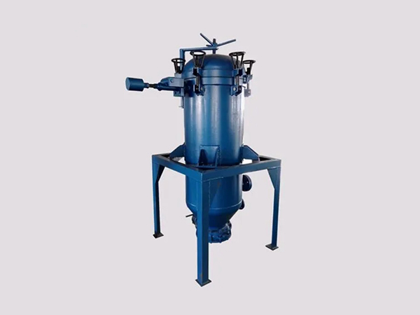 隨著混合液過濾量的增加,濾餅層越來越厚,過濾阻力增加,罐內壓力升高,當看到過濾機上部壓力表顯示為0.4Mpa時,停止向過濾機罐內輸送混合液,開啟空壓機,通過管道經溢流口向過濾機罐內輸入空氣,在空氣壓力作用下,濾餅中的油被逐漸壓出,經管道回到脫色鍋或攪拌罐,約30分鐘以后,濾餅被壓干,停止向過濾機內輸入空氣,當看到上部壓力表顯示為0時,打開蝶閥,啟動振動體,開始排渣,當渣排凈時,關閉蝶閥及所有閥門,開始下一-輪過濾。脫色專用過濾機主要由提升架、罐體、不銹鋼篩網、振動排渣裝置、蝶閥、運輸支架組成。