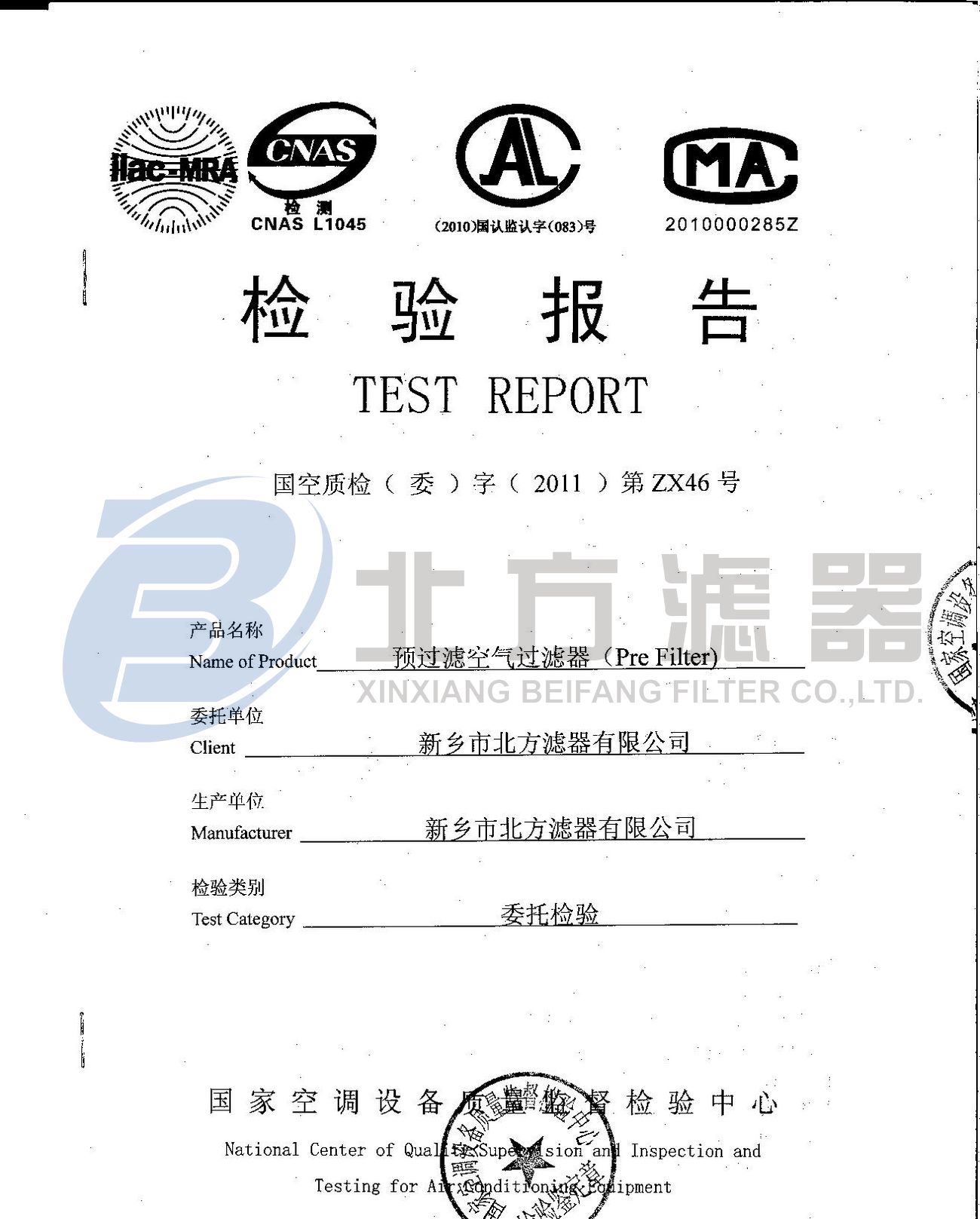 當(dāng)前位置 : 主頁(yè) > 關(guān)于我們 > 榮譽(yù)資質(zhì) -預(yù)過(guò)濾空氣過(guò)濾器檢測(cè)報(bào)告