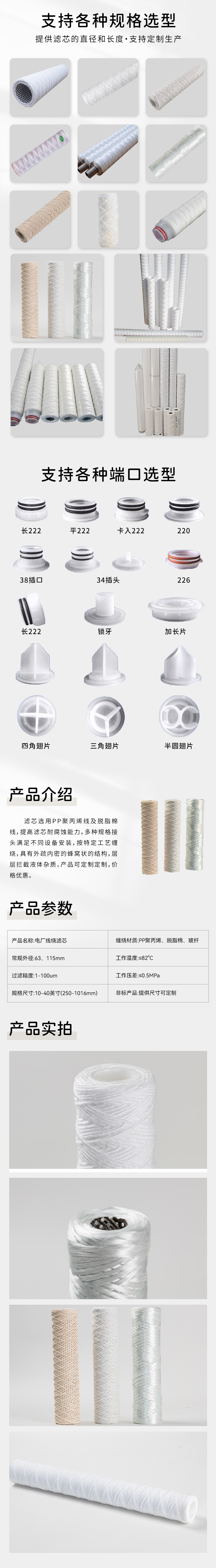 【產品簡介】:過濾精度:1、3、5、10、25、50、75、100um 應用行業:電廠、反滲透過濾、循環水過濾、石化等 線繞濾芯在使用一段時間后,會因為濾芯孔徑被堵塞而導致通量降低,影響過濾效果。因此,需要定期更換濾芯,以保證水處理系統的正常運行。一般來說,濾芯的更換周期應該根據實際情況而定,一般為3-6個月。