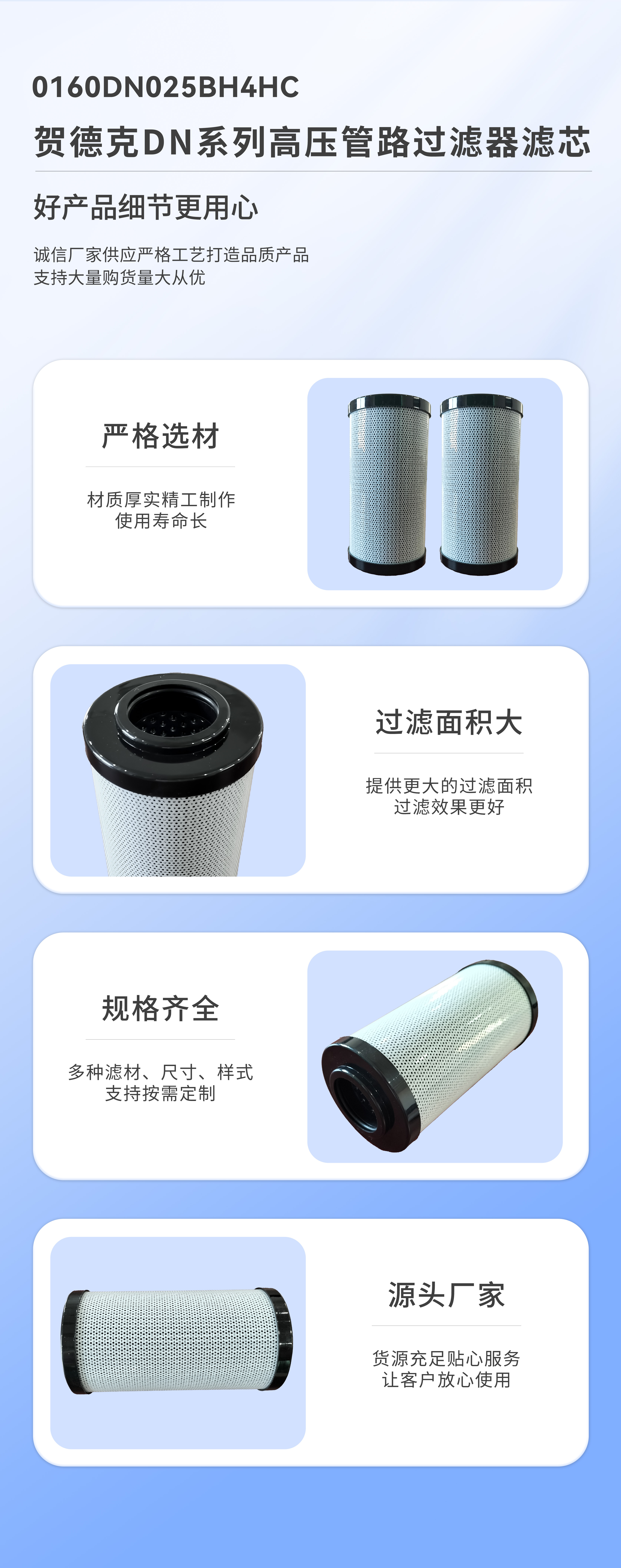 【產品簡介】:賀德克DN系列高壓管路過濾器濾芯在液壓系統中,用于濾除工作介質中的固體顆粒及膠狀物質,控制工作介質的污染度。